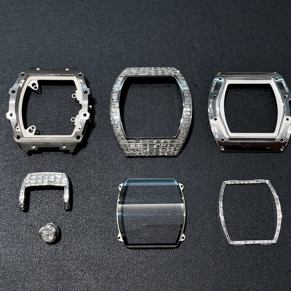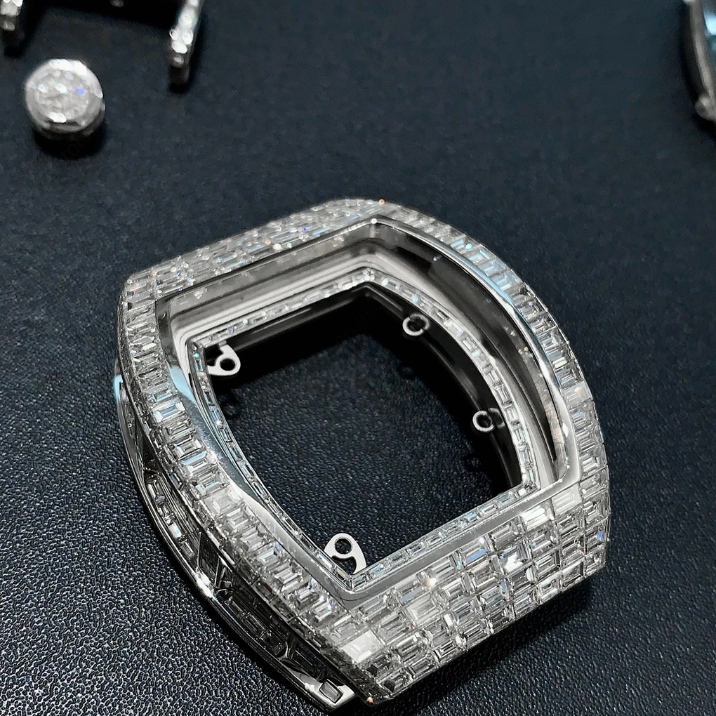 18K White Gold Natural Diamonds Watch Case 40mm Customizable Automatic Watch Accessories With White Gold Buckle for Rm